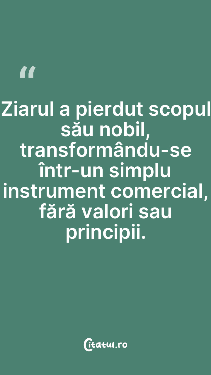 Ziarul a pierdut scopul său nobil, transformându-se într-un simplu instrument comercial, fără valori sau principii.