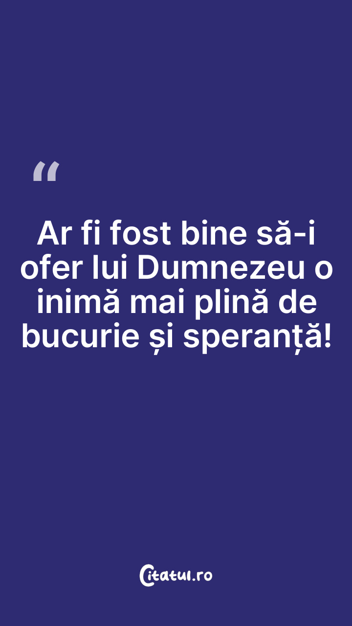 Ar fi fost bine să-i ofer lui Dumnezeu o inimă mai plină de bucurie și speranță!