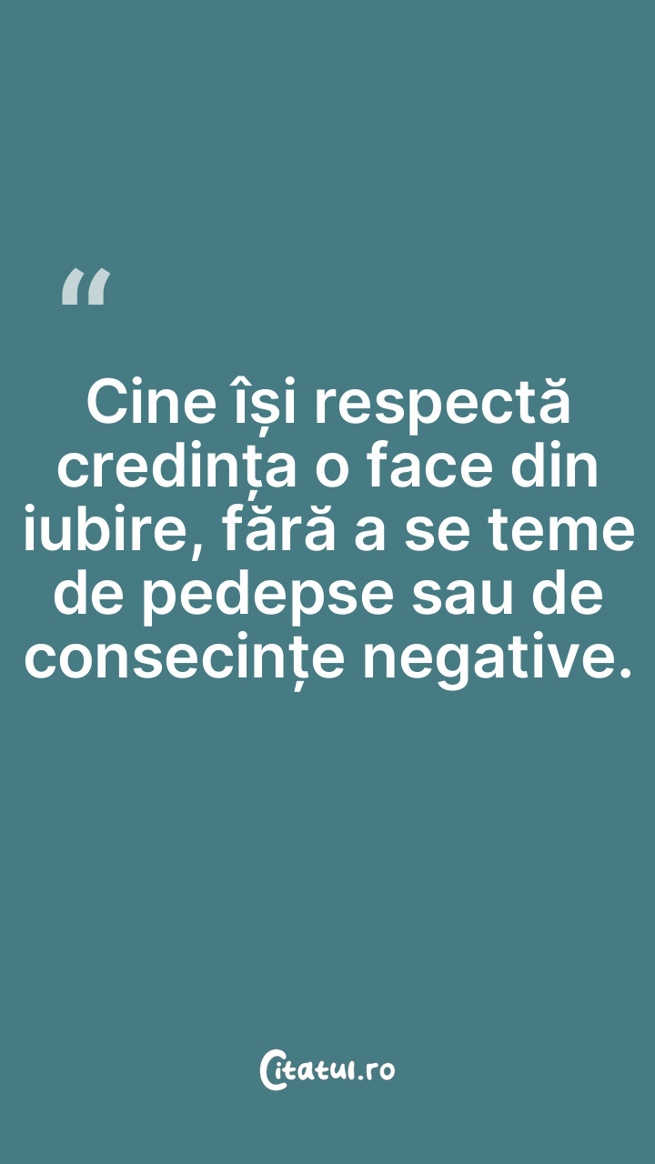 Cine își respectă credința o face din iubire, fără a se teme de pedepse sau de consecințe negative.