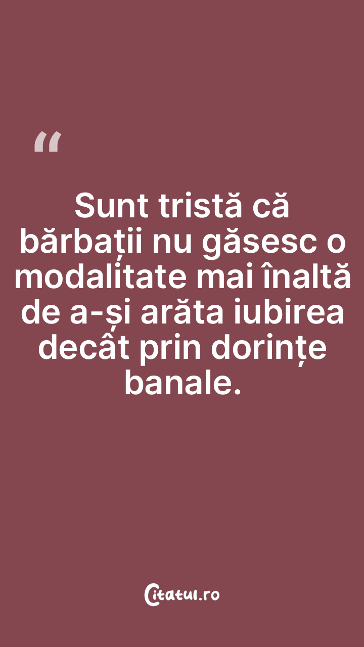 Sunt tristă că bărbații nu găsesc o modalitate mai înaltă de a-și arăta iubirea decât prin dorințe banale.