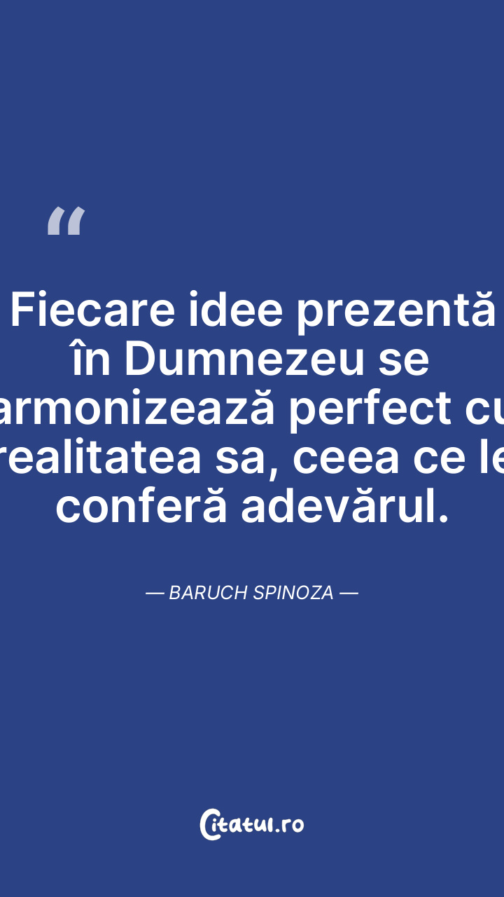 Fiecare idee prezentă în Dumnezeu se armonizează perfect cu realitatea sa, ceea ce le conferă adevărul. Baruch Spinoza