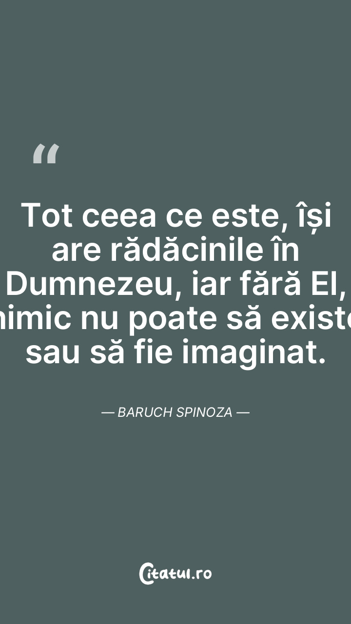 Tot ceea ce este, își are rădăcinile în Dumnezeu, iar fără El, nimic nu poate să existe sau să fie imaginat. Baruch Spinoza