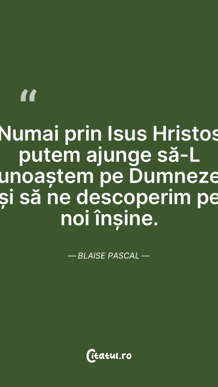 Numai prin Isus Hristos putem ajunge să-L cunoaștem pe Dumnezeu și să ne descoperim pe noi înșine. Blaise Pascal
