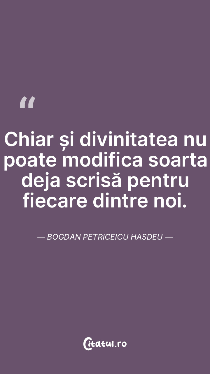 Chiar și divinitatea nu poate modifica soarta deja scrisă pentru fiecare dintre noi. Bogdan Petriceicu Hasdeu