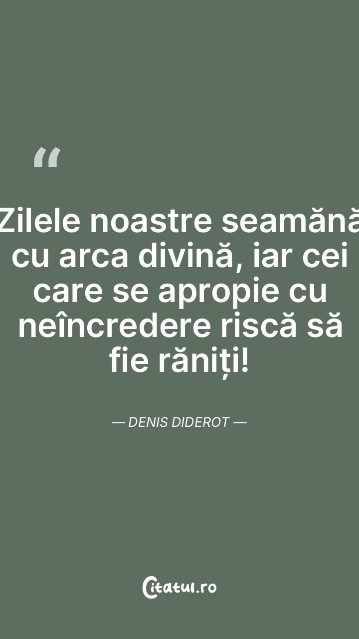 Zilele noastre seamănă cu arca divină, iar cei care se apropie cu neîncredere riscă să fie răniți! Denis Diderot