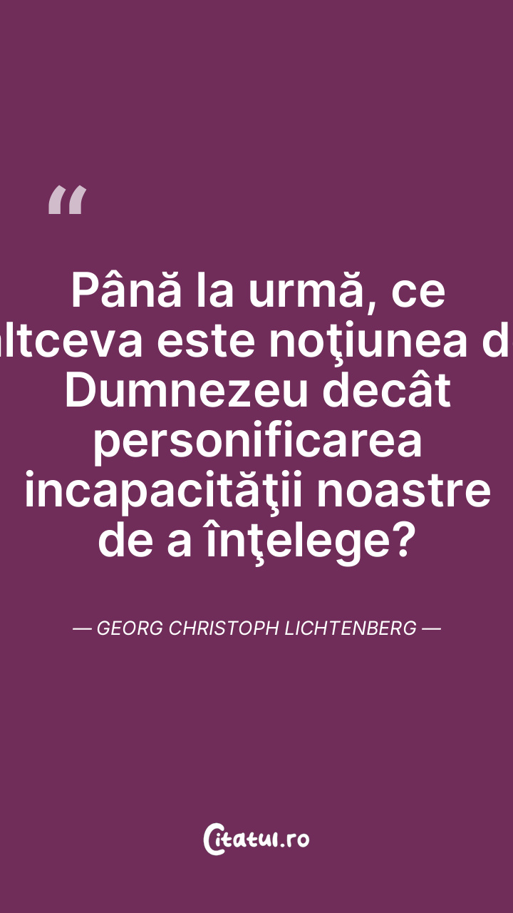 Până la urmă, ce altceva este noţiunea de Dumnezeu decât personificarea incapacităţii noastre de a înţelege? Georg Christoph Lichtenberg