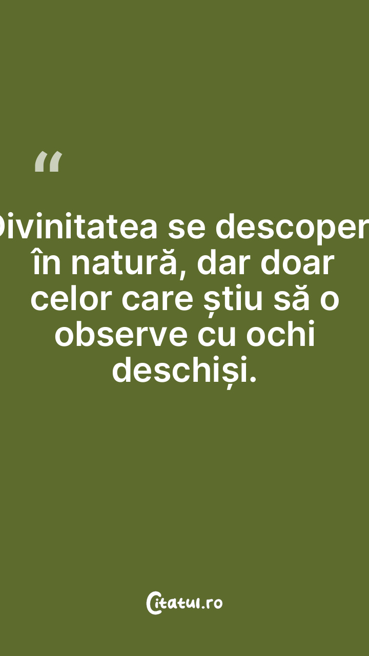 Divinitatea se descoperă în natură, dar doar celor care știu să o observe cu ochi deschiși.