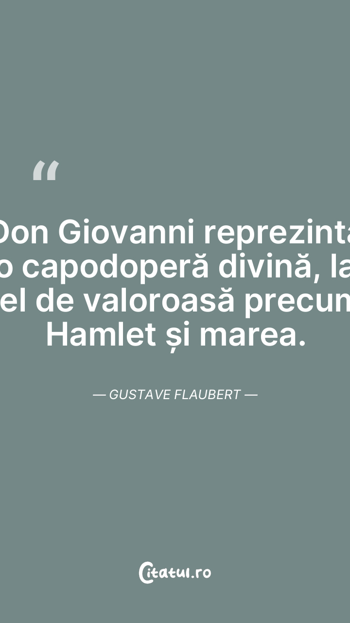 Don Giovanni reprezintă o capodoperă divină, la fel de valoroasă precum Hamlet și marea. Gustave Flaubert
