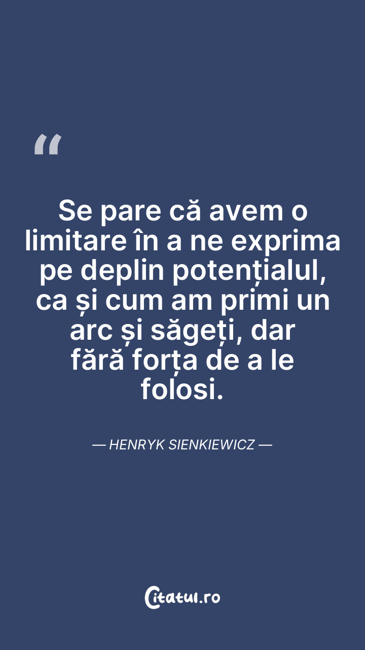 Se pare că avem o limitare în a ne exprima pe deplin potențialul, ca și cum am primi un arc și săgeți, dar fără forța de a le folosi. Henryk Sienkiewicz
