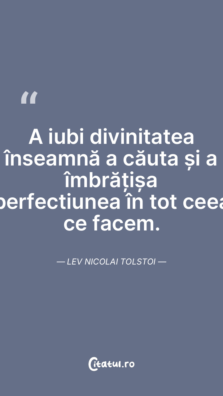 A iubi divinitatea înseamnă a căuta și a îmbrățișa perfectiunea în tot ceea ce facem. Lev Nicolai Tolstoi