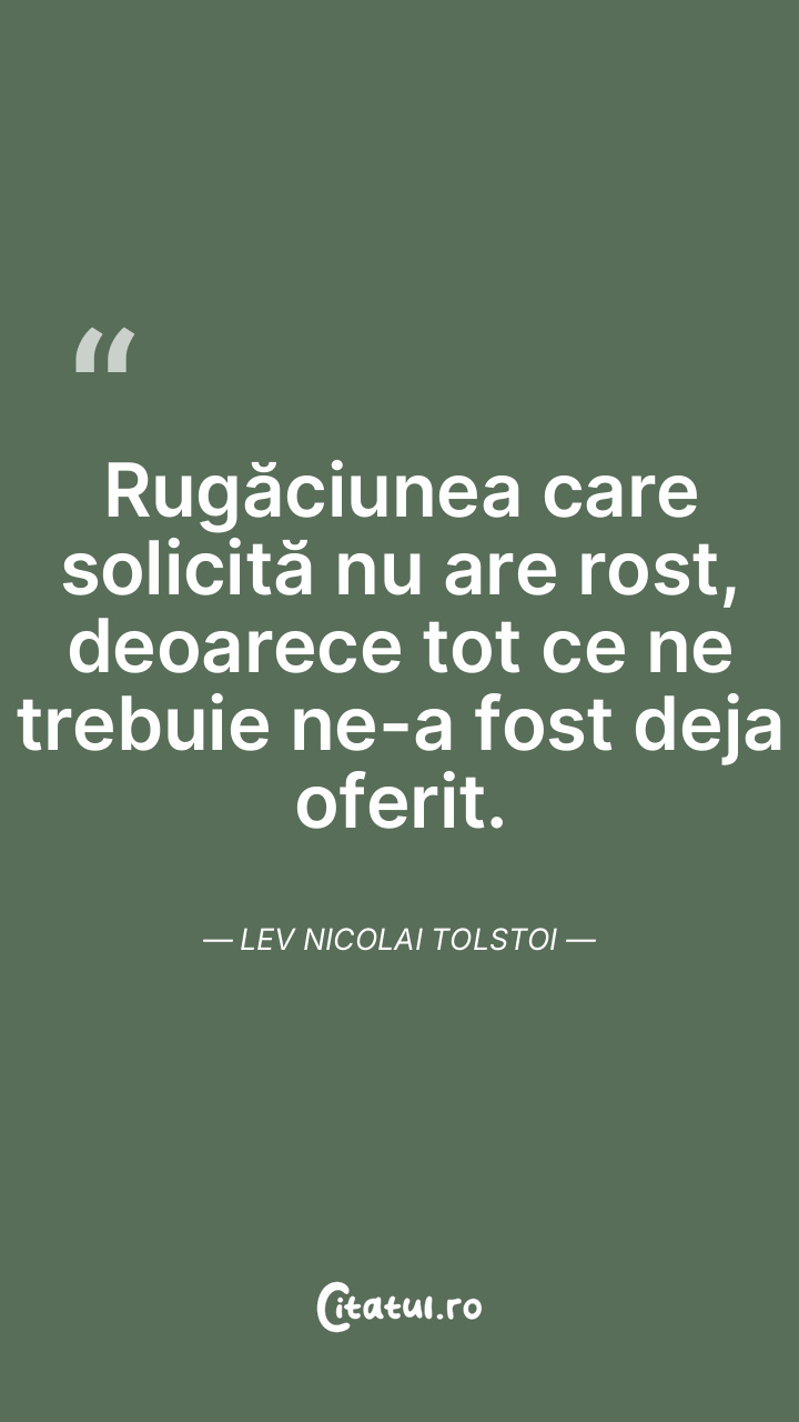 Rugăciunea care solicită nu are rost, deoarece tot ce ne trebuie ne-a fost deja oferit. Lev Nicolai Tolstoi
