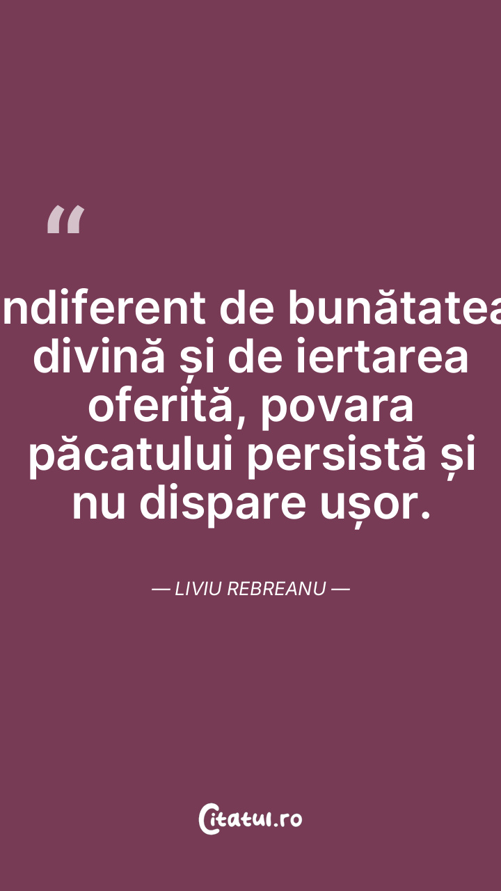 Indiferent de bunătatea divină și de iertarea oferită, povara păcatului persistă și nu dispare ușor. Liviu Rebreanu