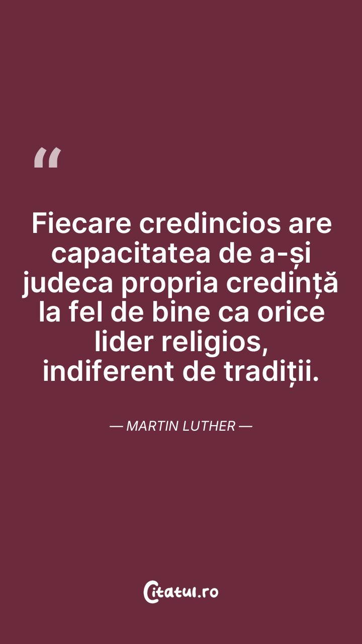 Fiecare credincios are capacitatea de a-și judeca propria credință la fel de bine ca orice lider religios, indiferent de tradiții. Martin Luther