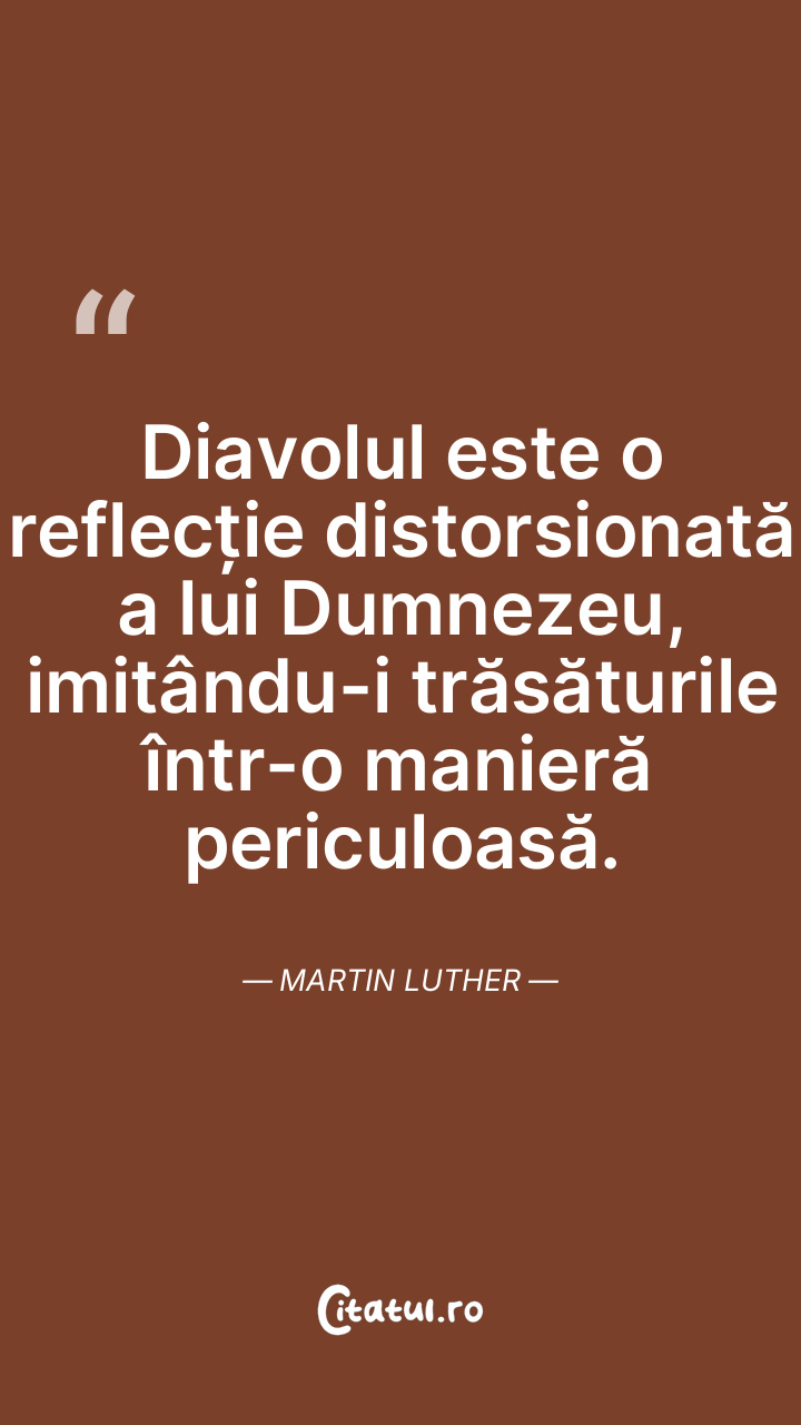 Diavolul este o reflecție distorsionată a lui Dumnezeu, imitându-i trăsăturile într-o manieră periculoasă. Martin Luther