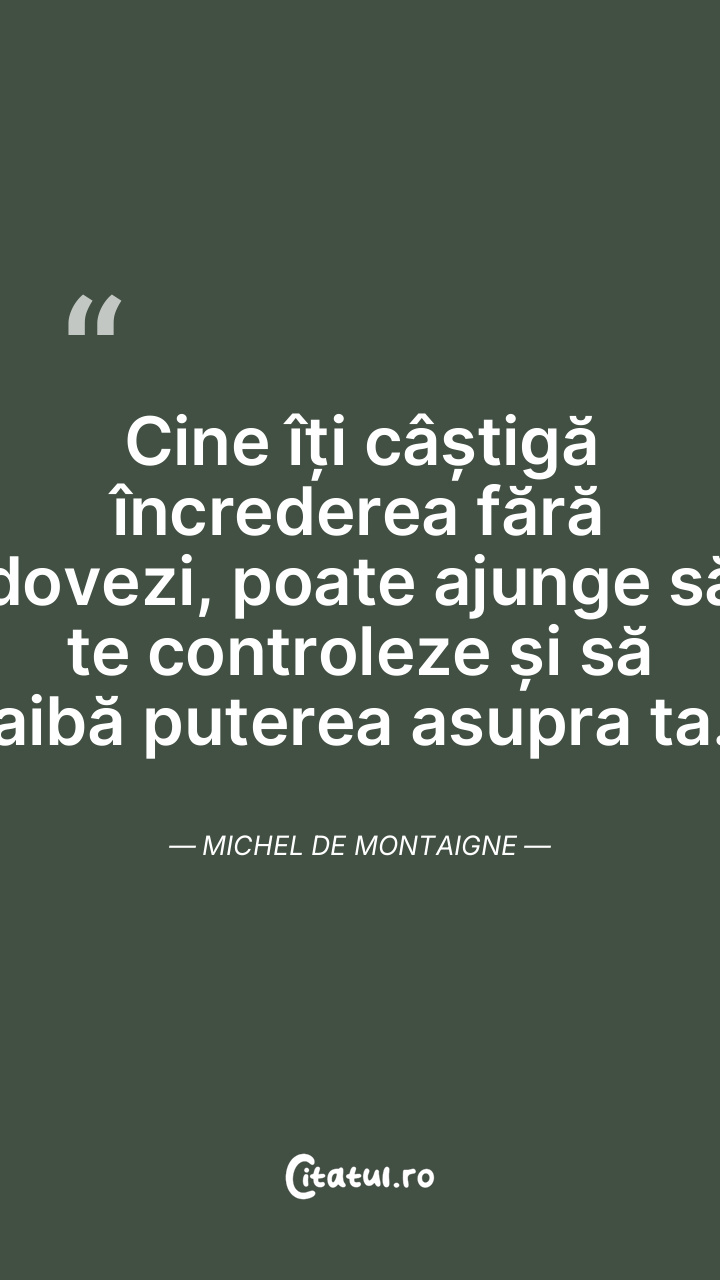 Cine îți câștigă încrederea fără dovezi, poate ajunge să te controleze și să aibă puterea asupra ta. Michel de Montaigne