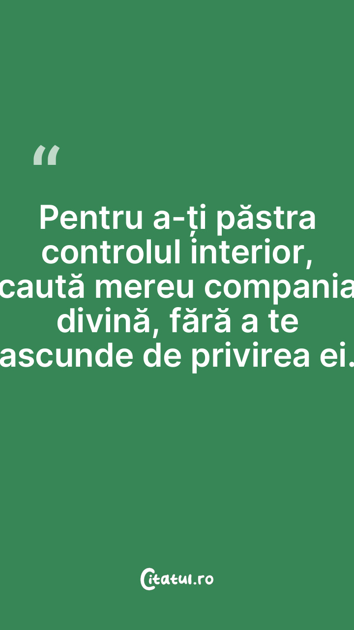 Pentru a-ți păstra controlul interior, caută mereu compania divină, fără a te ascunde de privirea ei.