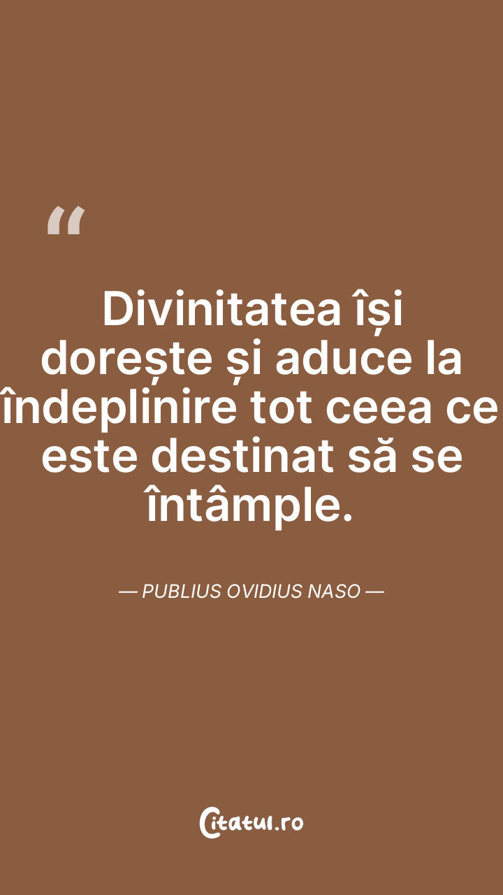Divinitatea își dorește și aduce la îndeplinire tot ceea ce este destinat să se întâmple. Publius Ovidius Naso