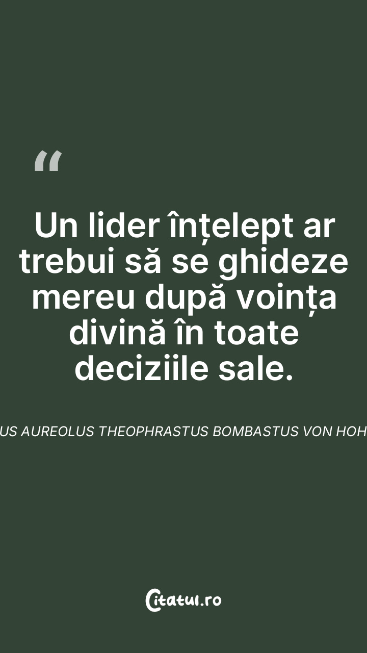 Un lider înțelept ar trebui să se ghideze mereu după voința divină în toate deciziile sale. Philippus Aureolus Theophrastus Bombastus von Hohenheim
