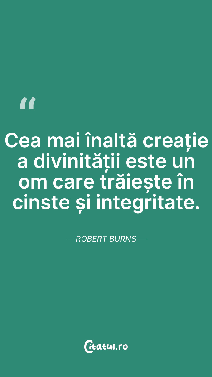 Cea mai înaltă creație a divinității este un om care trăiește în cinste și integritate. Robert Burns