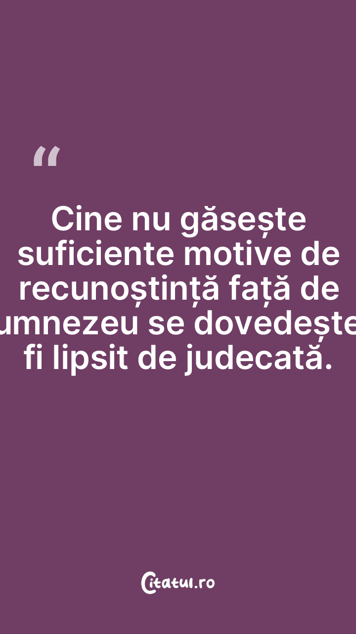 Cine nu găsește suficiente motive de recunoștință față de Dumnezeu se dovedește a fi lipsit de judecată.