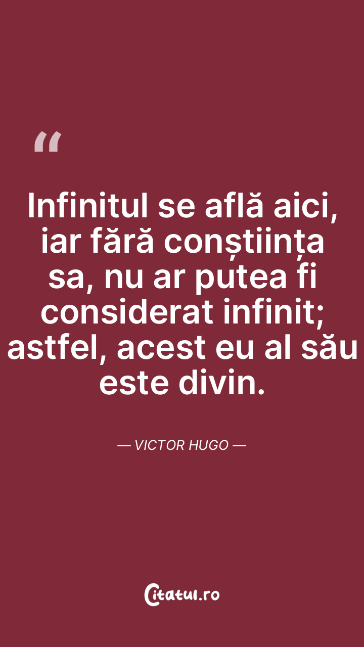 Infinitul se află aici, iar fără conștiința sa, nu ar putea fi considerat infinit; astfel, acest eu al său este divin. Victor Hugo