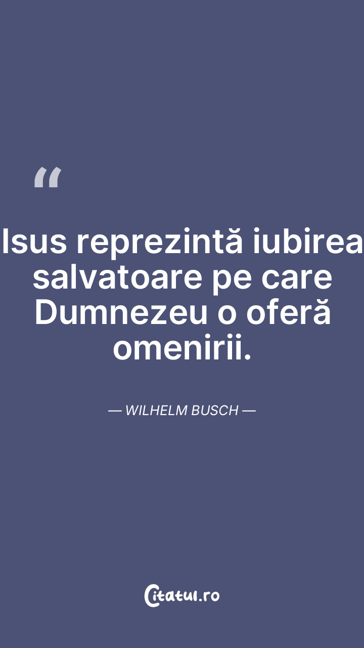 Isus reprezintă iubirea salvatoare pe care Dumnezeu o oferă omenirii. Wilhelm Busch