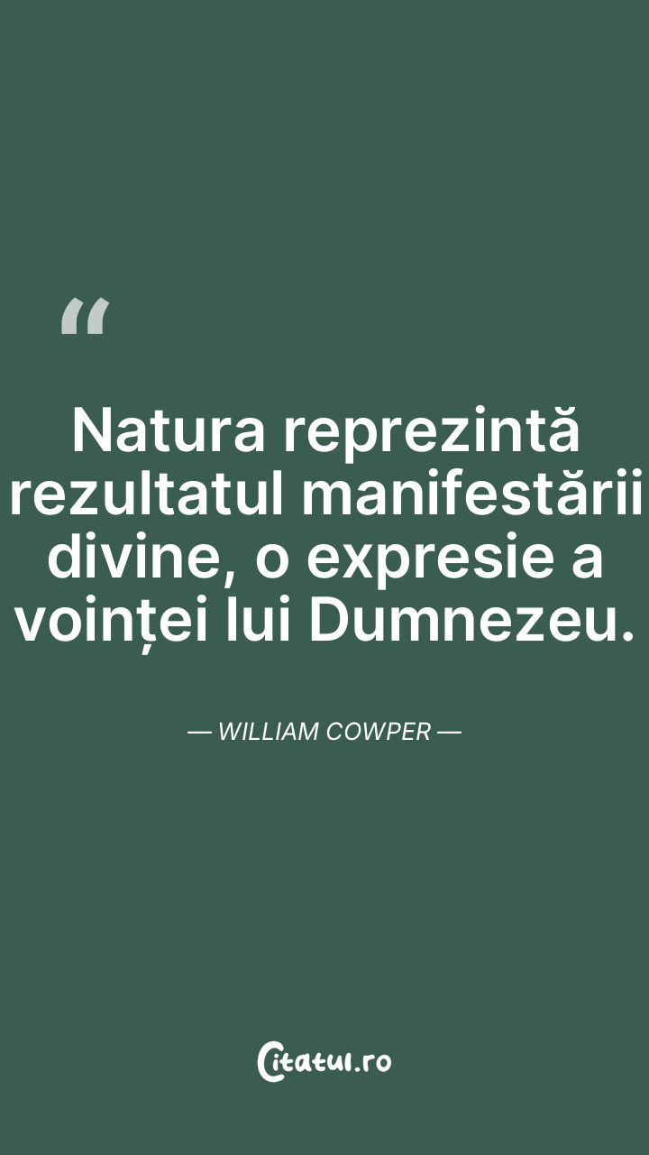 Natura reprezintă rezultatul manifestării divine, o expresie a voinței lui Dumnezeu. William Cowper