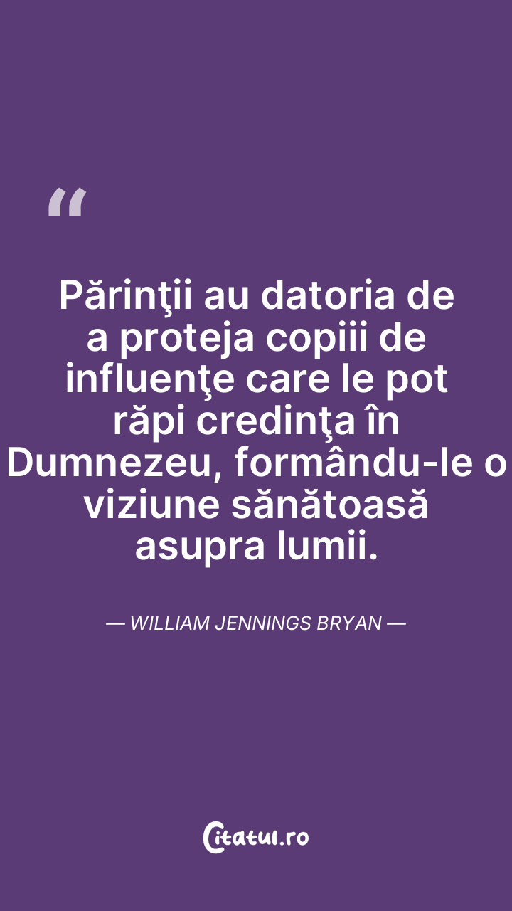 Părinţii au datoria de a proteja copiii de influenţe care le pot răpi credinţa în Dumnezeu, formându-le o viziune sănătoasă asupra lumii. William Jennings Bryan