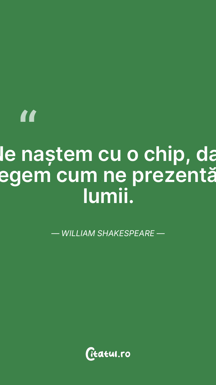 Ne naștem cu o chip, dar alegem cum ne prezentăm lumii. William Shakespeare