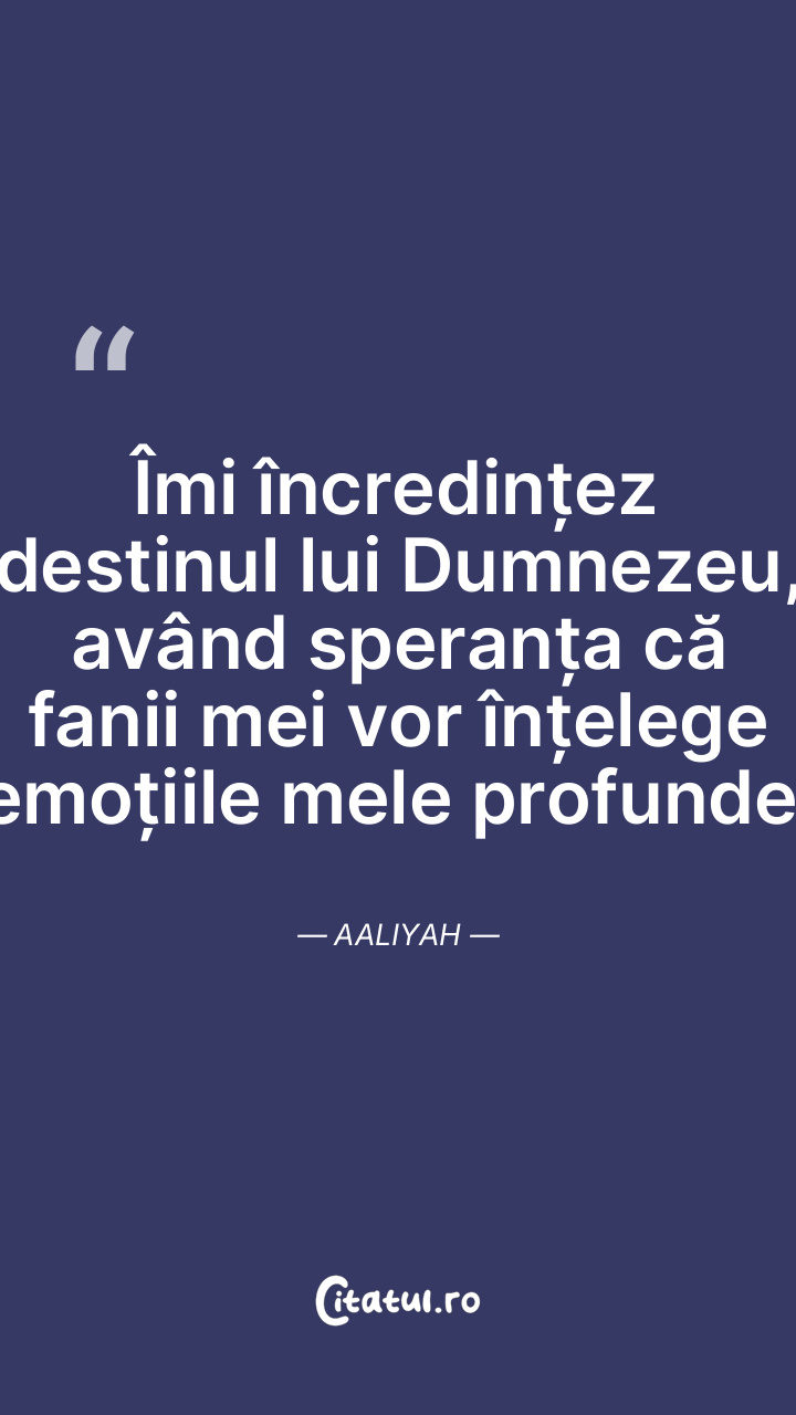Îmi încredințez destinul lui Dumnezeu, având speranța că fanii mei vor înțelege emoțiile mele profunde. Aaliyah