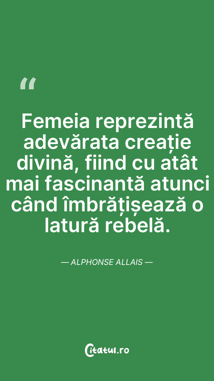 Femeia reprezintă adevărata creație divină, fiind cu atât mai fascinantă atunci când îmbrățișează o latură rebelă. Alphonse Allais