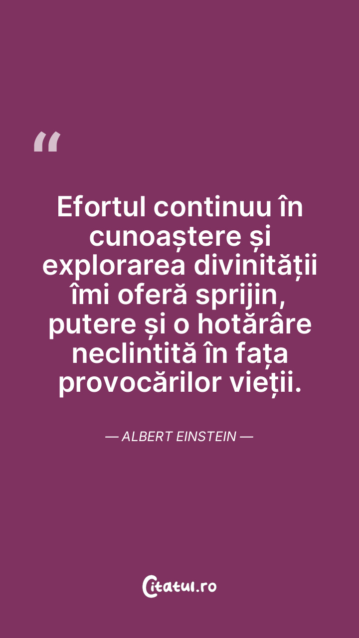 Efortul continuu în cunoaștere și explorarea divinității îmi oferă sprijin, putere și o hotărâre neclintită în fața provocărilor vieții. Albert Einstein