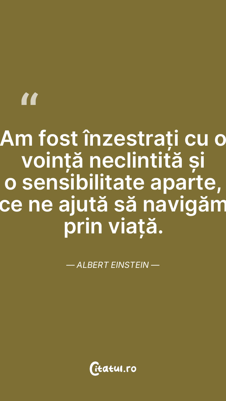 Am fost înzestrați cu o voință neclintită și o sensibilitate aparte, ce ne ajută să navigăm prin viață. Albert Einstein