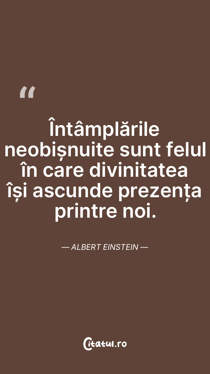 Întâmplările neobișnuite sunt felul în care divinitatea își ascunde prezența printre noi. Albert Einstein