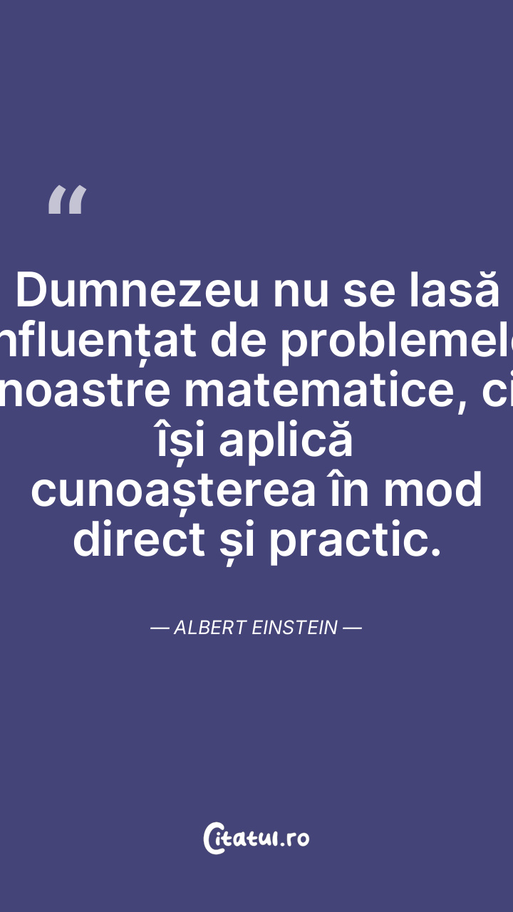 Dumnezeu nu se lasă influențat de problemele noastre matematice, ci își aplică cunoașterea în mod direct și practic. Albert Einstein