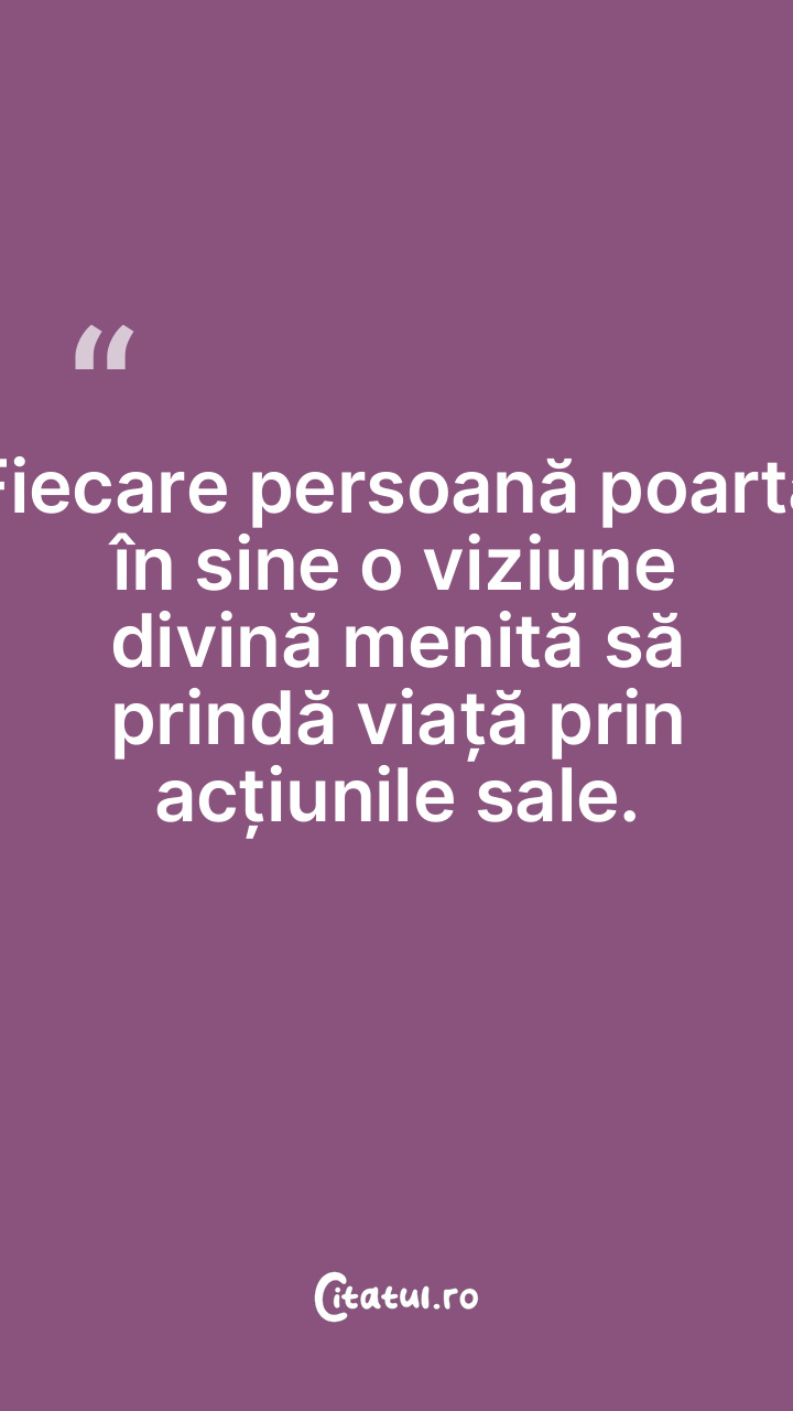 Fiecare persoană poartă în sine o viziune divină menită să prindă viață prin acțiunile sale.