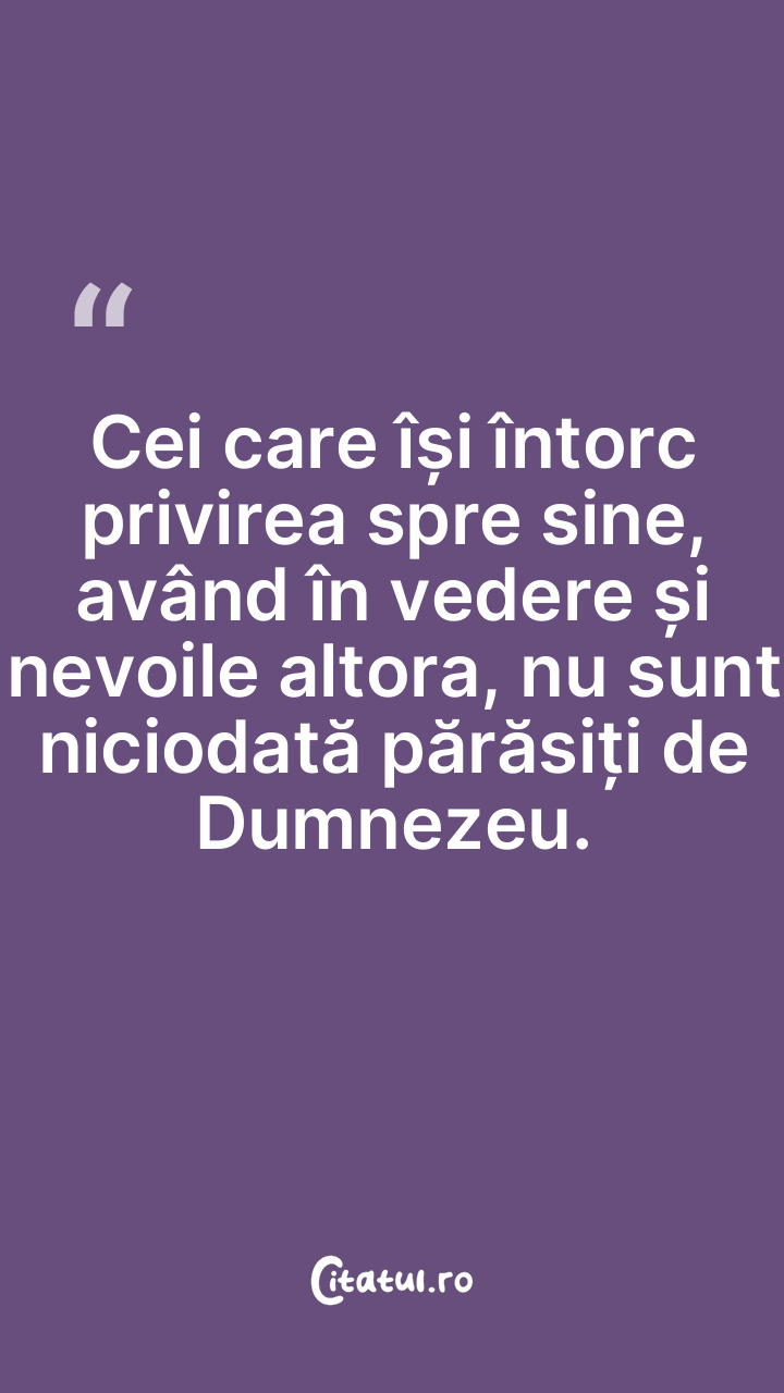 Cei care își întorc privirea spre sine, având în vedere și nevoile altora, nu sunt niciodată părăsiți de Dumnezeu.