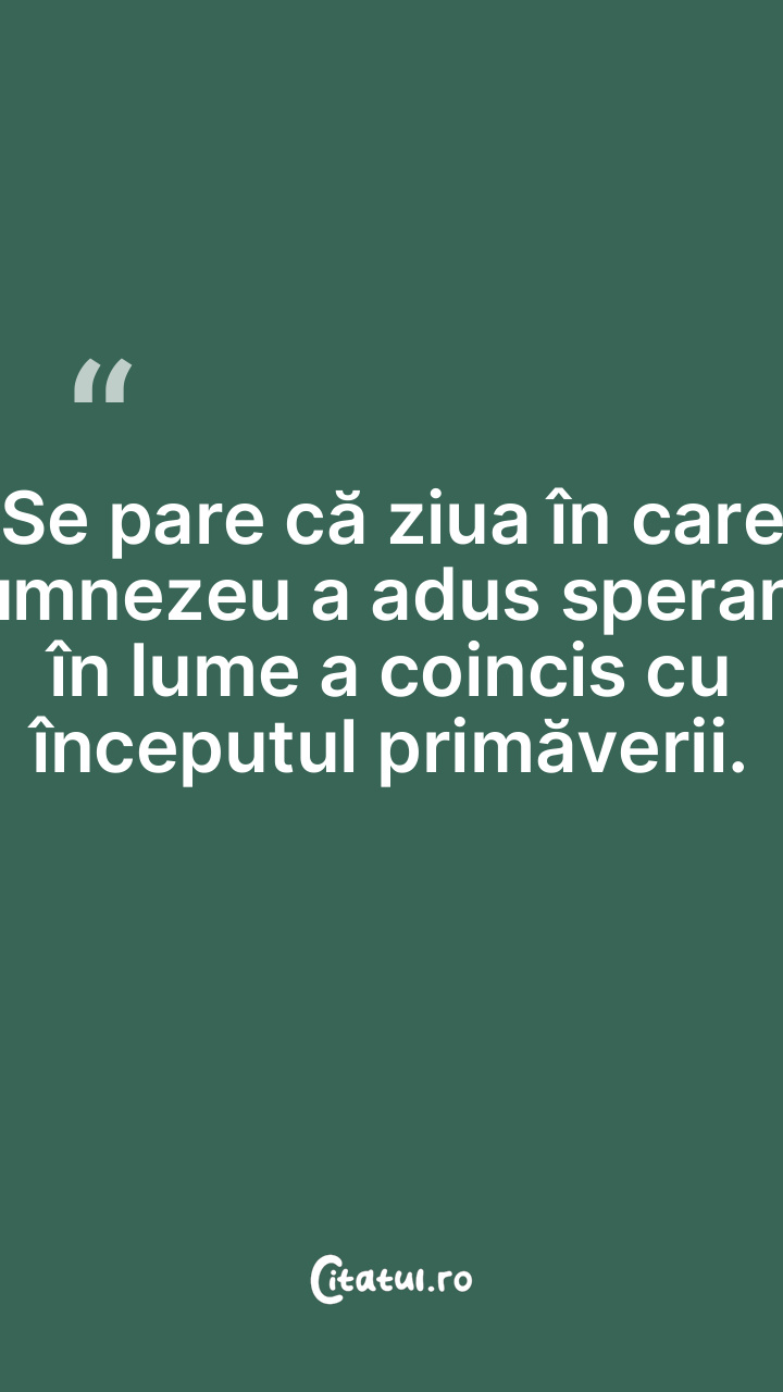 Se pare că ziua în care Dumnezeu a adus speranța în lume a coincis cu începutul primăverii.