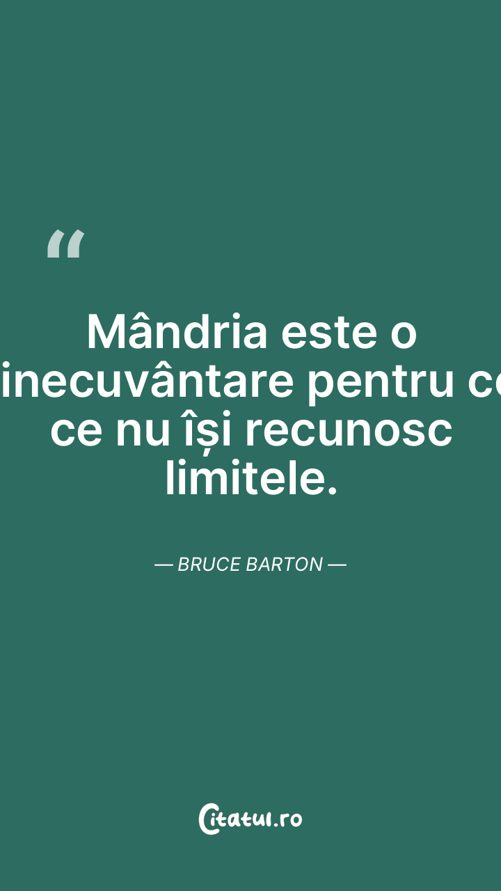 Mândria este o binecuvântare pentru cei ce nu își recunosc limitele. Bruce Barton