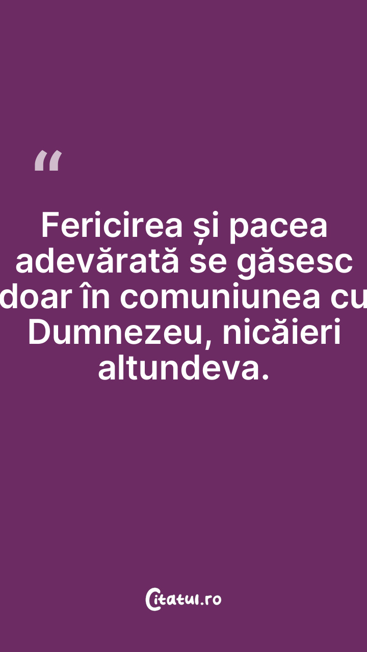 Fericirea și pacea adevărată se găsesc doar în comuniunea cu Dumnezeu, nicăieri altundeva.