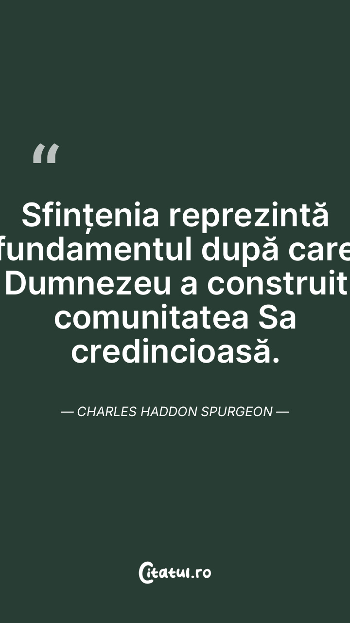 Sfințenia reprezintă fundamentul după care Dumnezeu a construit comunitatea Sa credincioasă. Charles Haddon Spurgeon