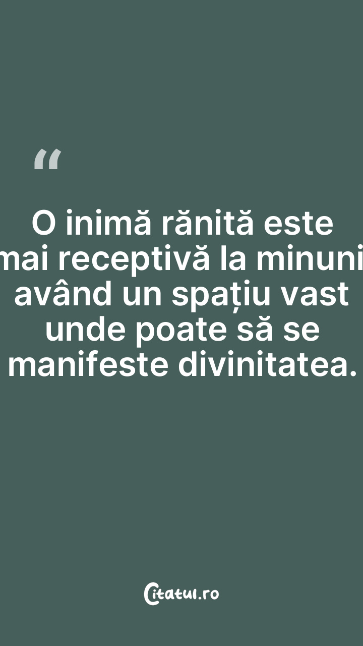 O inimă rănită este mai receptivă la minuni, având un spațiu vast unde poate să se manifeste divinitatea.