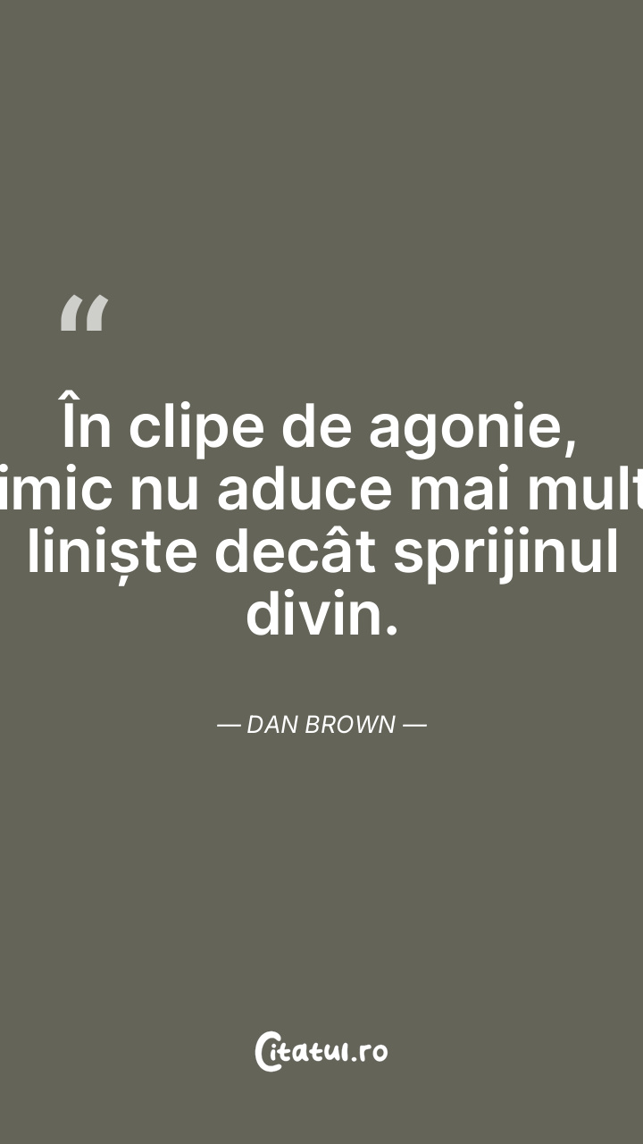 În clipe de agonie, nimic nu aduce mai multă liniște decât sprijinul divin. Dan Brown