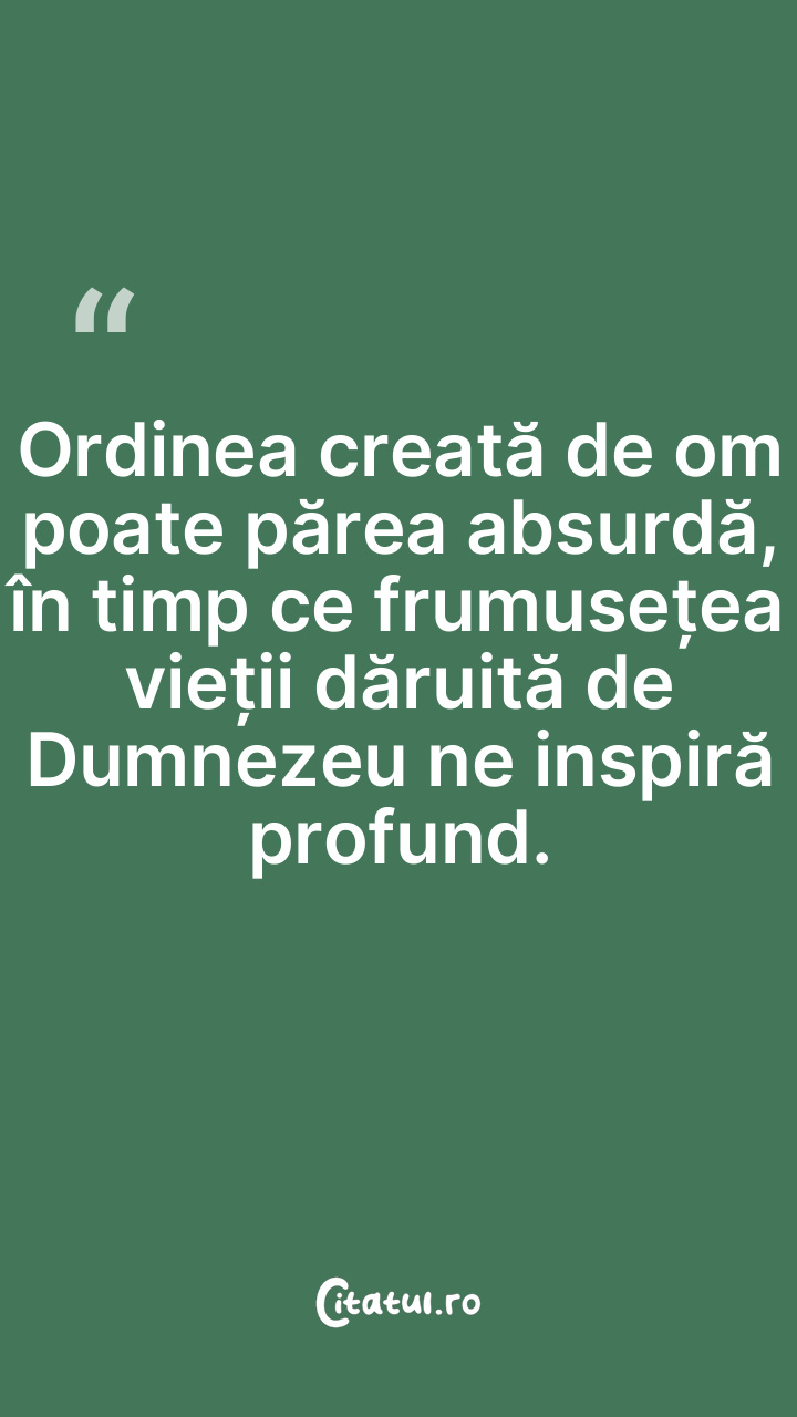 Ordinea creată de om poate părea absurdă, în timp ce frumusețea vieții dăruită de Dumnezeu ne inspiră profund.