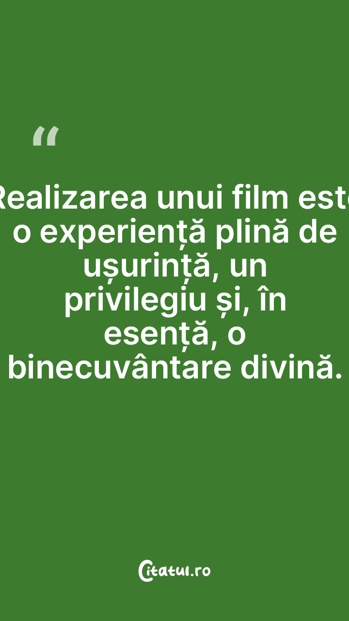 Realizarea unui film este o experiență plină de ușurință, un privilegiu și, în esență, o binecuvântare divină.