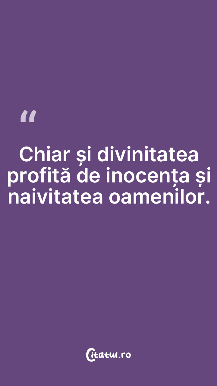 Chiar și divinitatea profită de inocența și naivitatea oamenilor.