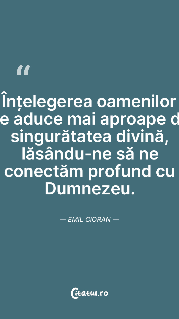 Înțelegerea oamenilor ne aduce mai aproape de singurătatea divină, lăsându-ne să ne conectăm profund cu Dumnezeu. Emil Cioran
