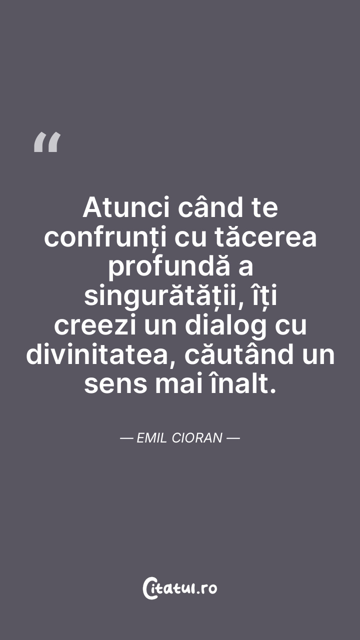 Atunci când te confrunți cu tăcerea profundă a singurătății, îți creezi un dialog cu divinitatea, căutând un sens mai înalt. Emil Cioran