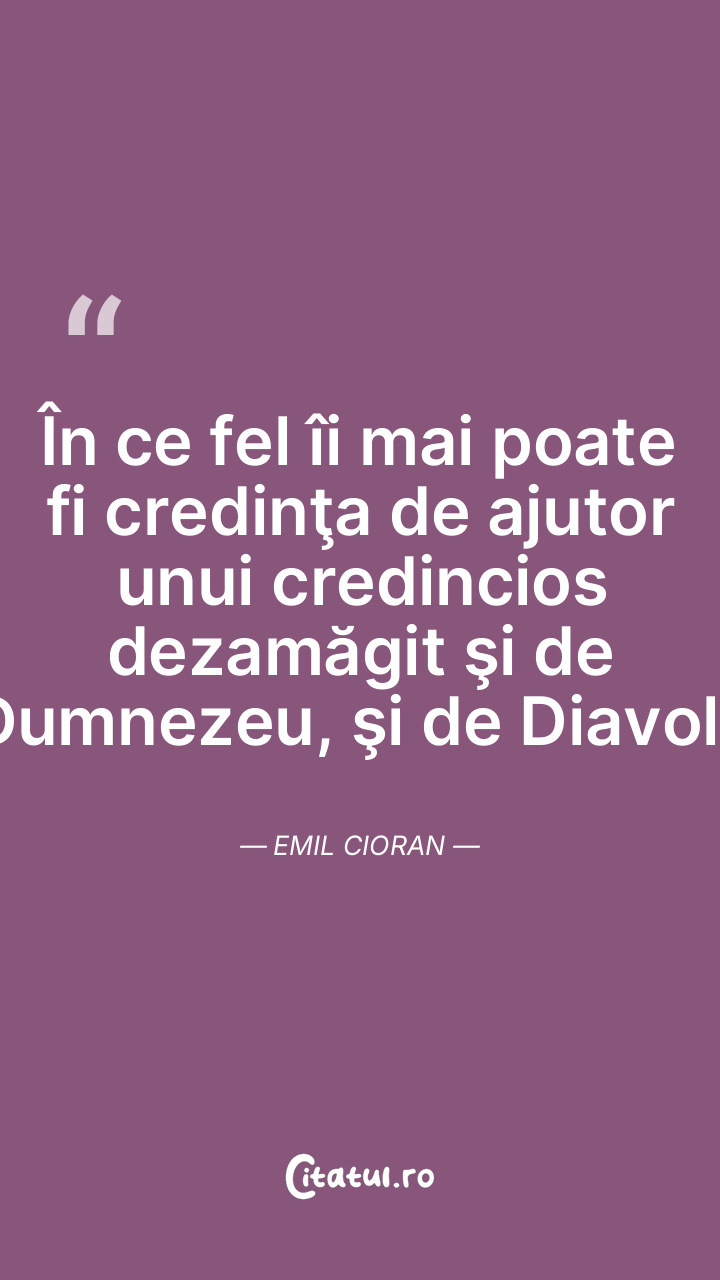 În ce fel îi mai poate fi credinţa de ajutor unui credincios dezamăgit şi de Dumnezeu, şi de Diavol? Emil Cioran