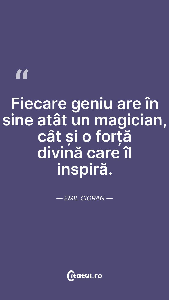 Fiecare geniu are în sine atât un magician, cât și o forță divină care îl inspiră. Emil Cioran